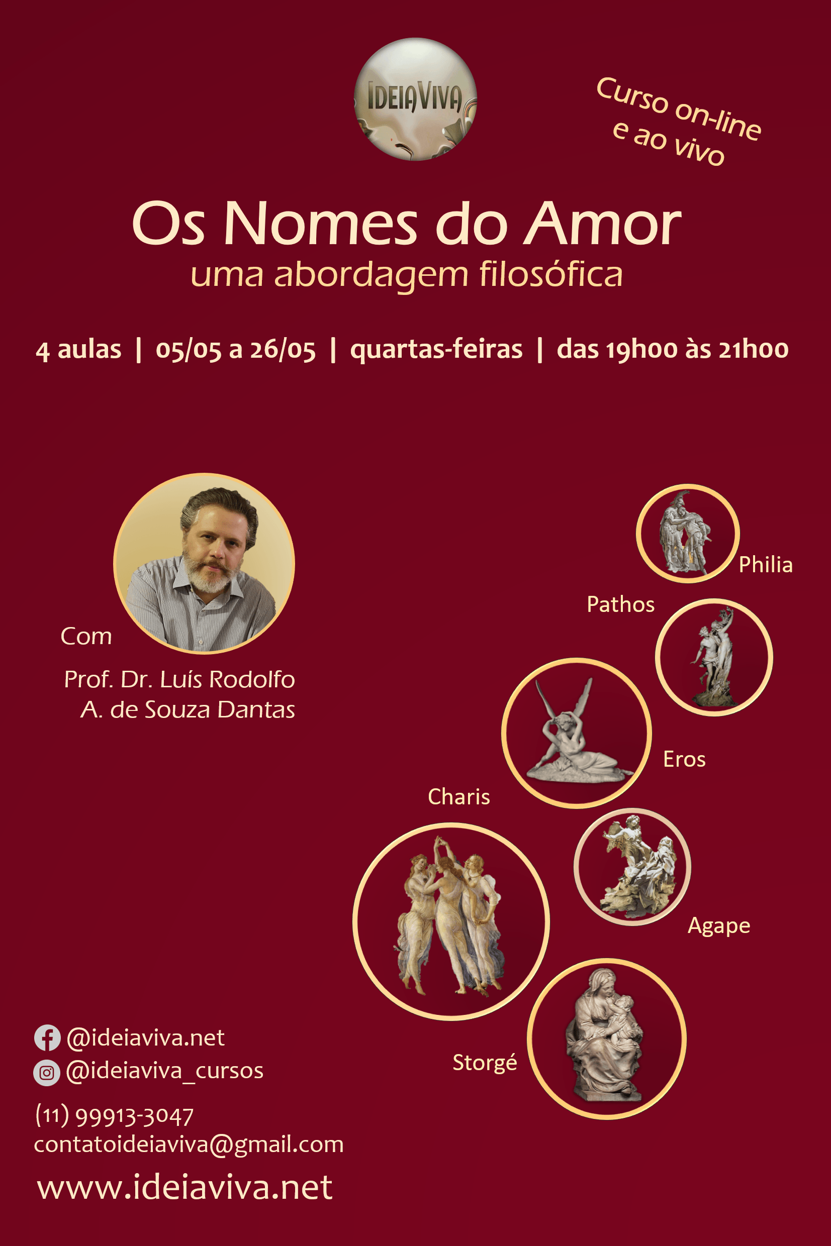 O curso irá explorar, nos quatro encontros, os significados que a palavra amor apresenta na linguagem comum, filosófica e psicanalítica, a partir de abordagens permeadas de exemplos recolhidos da literatura, da música e das artes visuais. Os sentidos díspares, múltiplos e contrastantes que o signo amor carrega, permitirão uma análise sistemática acerca das variáveis semânticas e especulativas de termos como